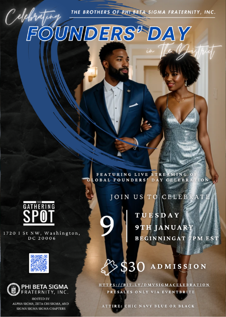 Hosted by the DMV Alumni Chapters, this January 9th bash promises an evening of elegance and significance. To our guest, We envision everyone to dress Chic’ Navy Blue or Black, will revel in the fraternity’s achievements, symbolizing a vibrant start to the new year. With over 200 Sigmas and guests in attendance, along with special invitations extended to Devine 9 members, city officials, national officers, and Zeta Phi Beta sisters, the celebration is geared to unite communities and honor Phi Beta Sigma’s legacy.